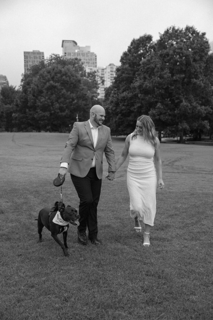 We started with their sweet pup, who was just as much a part of this love story as they are. After a few playful shots, we wandered through the park, letting the morning unfold naturally.