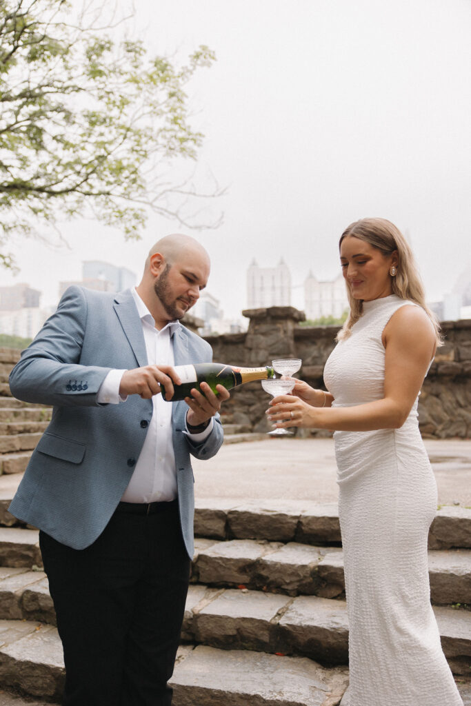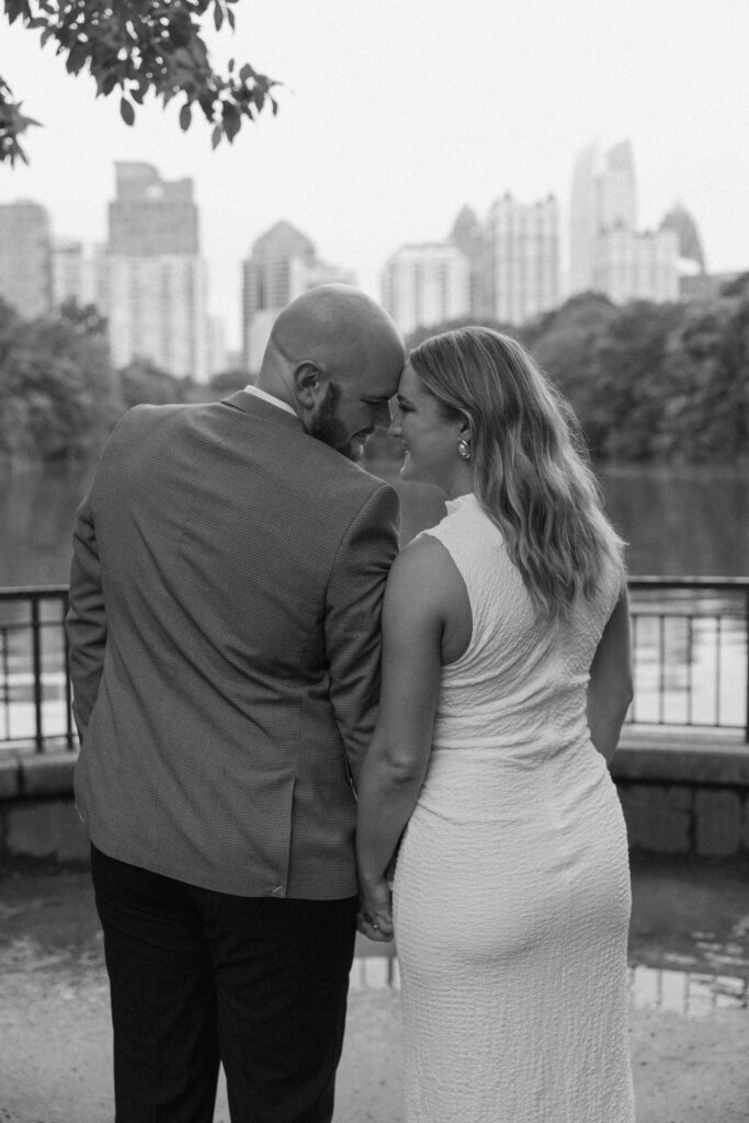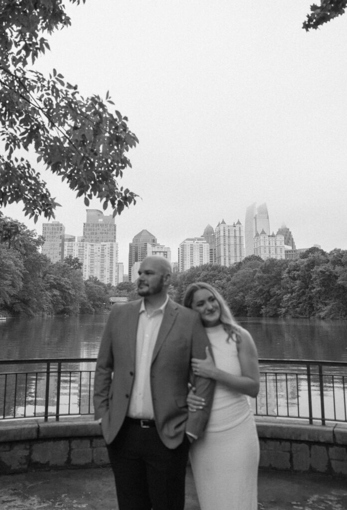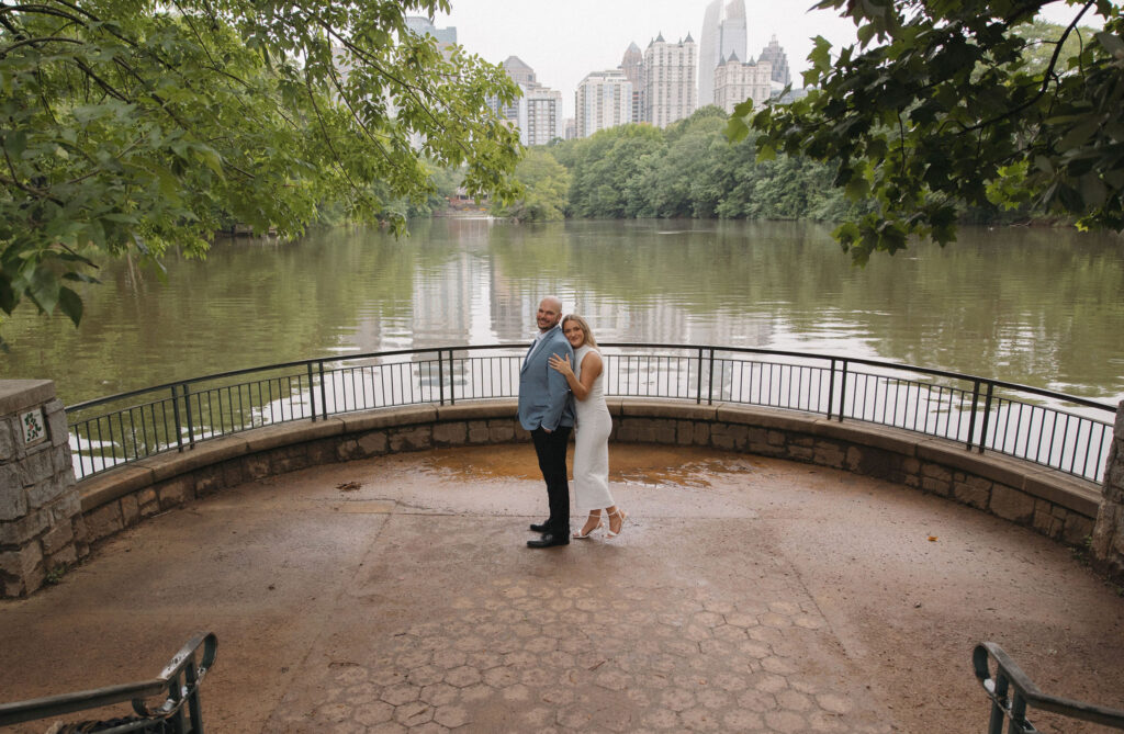 There’s something so special about a morning that feels like it might rain, but doesn’t. Jen and Corey’s engagement session at Piedmont Park had that quiet, cozy energy: A little overcast, soft light peaking through the trees and a light coolness in the air.