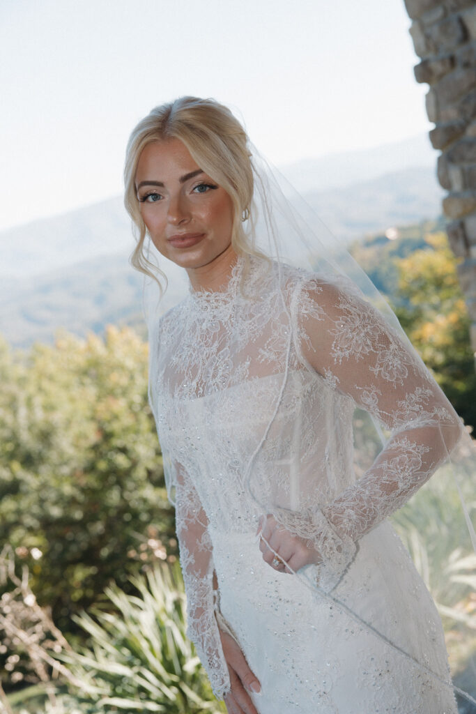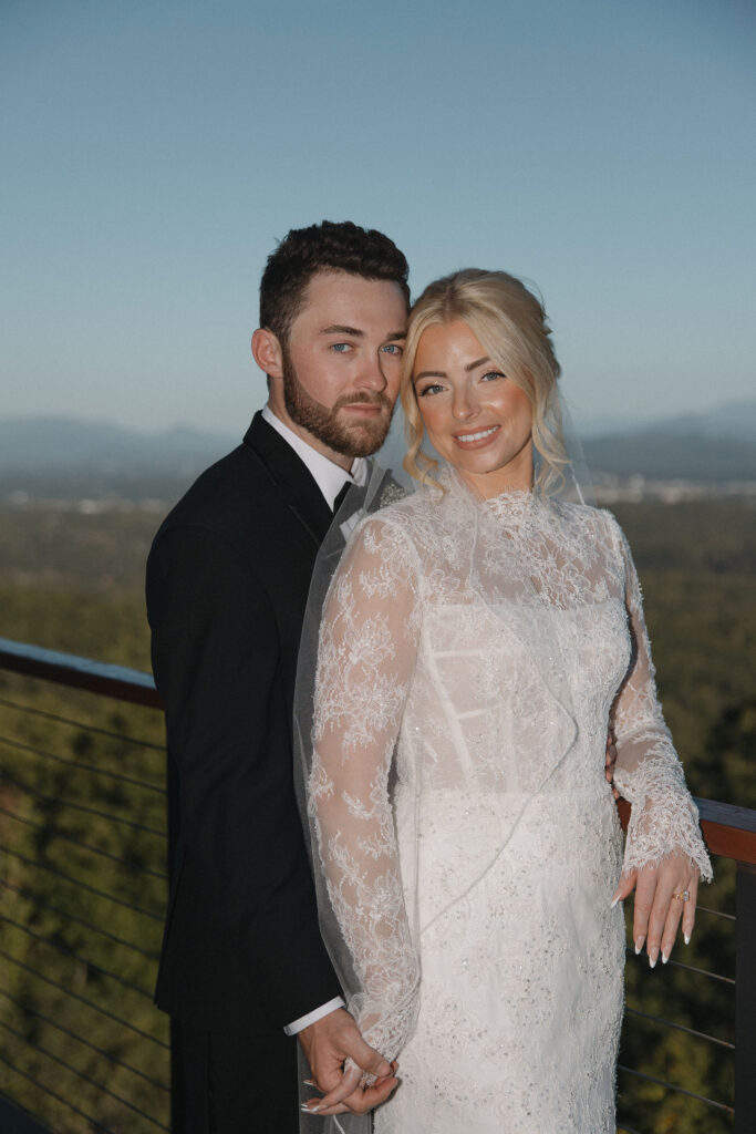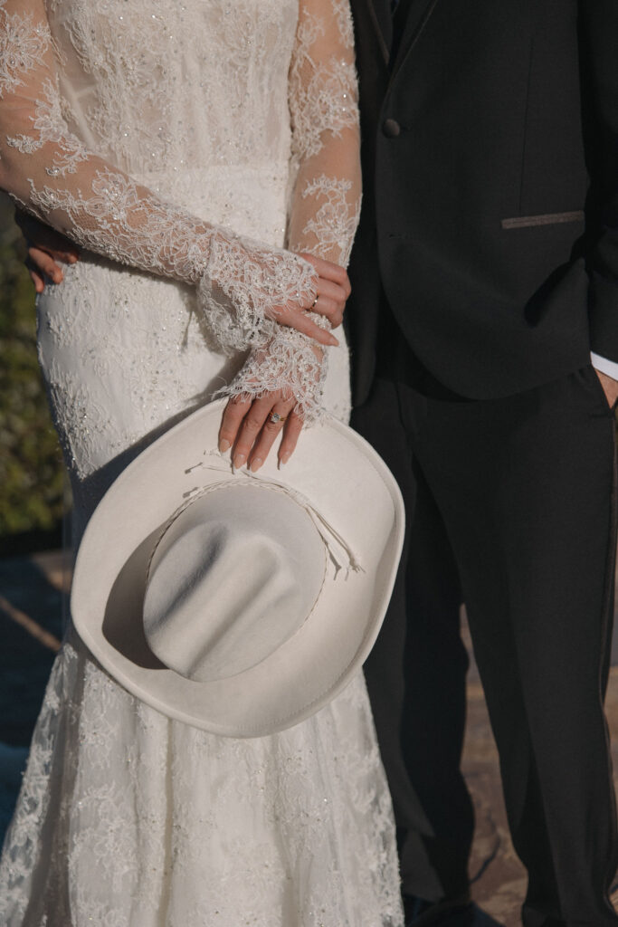 Their vibe was the perfect mix of Georgia cowboy meets the mountains, and I was absolutely obsessed. Megan’s lace gown from Watters at Magnolia Laine Bridal was stunning, and paired with their subtle cowboy boot + hat details, the whole day felt effortless, stylish, and completely them. She had the perfect hair and makeup team to complete the entire look.