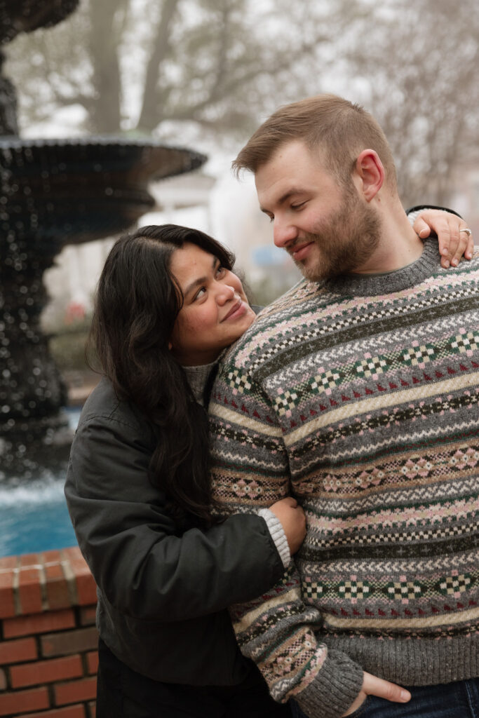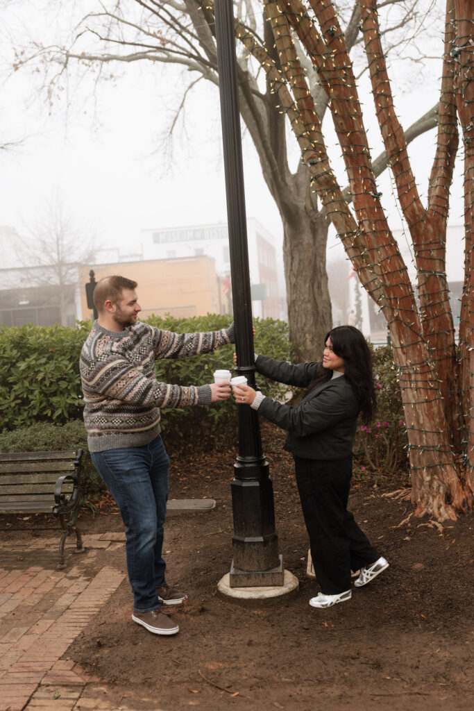We truly braved the freezing cold for Jochelle and Cole’s engagement session on a December morning at Marietta Square, and honestly, it was so worth it.