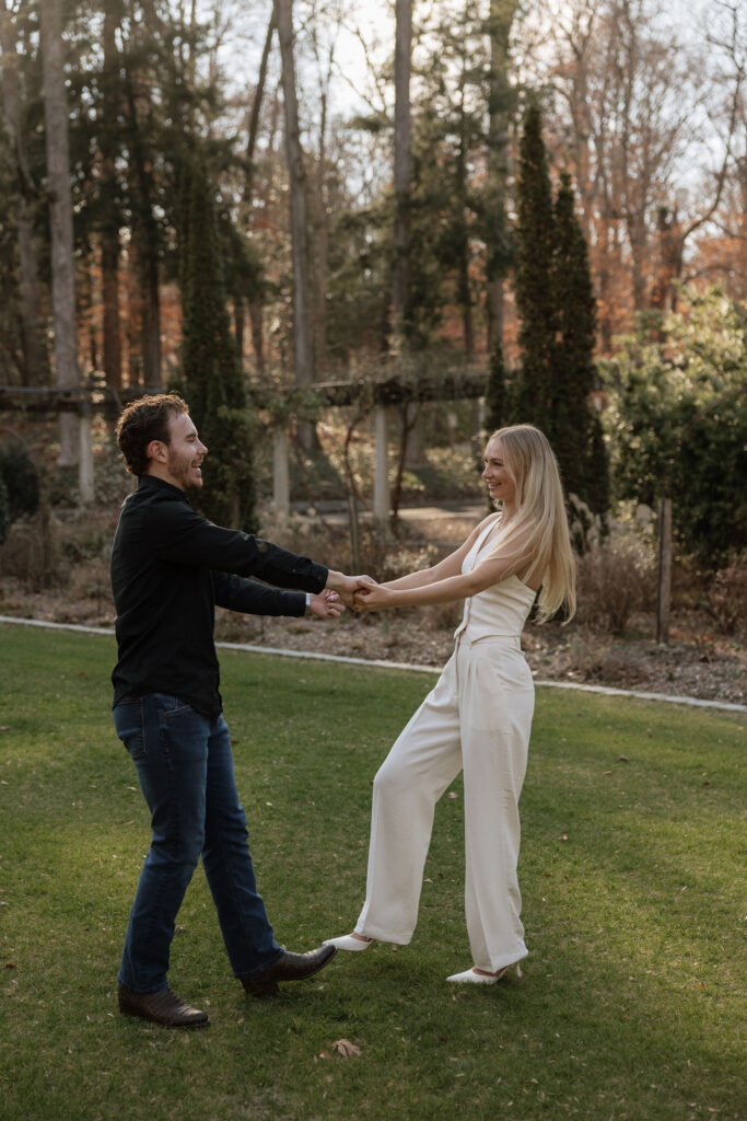 Raegan and Will’s engagement session at Cator Woolford Gardens was so sweet and intimate. I love this location because it truly feels like a hidden gem tucked right into the city — you would never guess something this beautiful is sitting just beyond the streets of Atlanta!