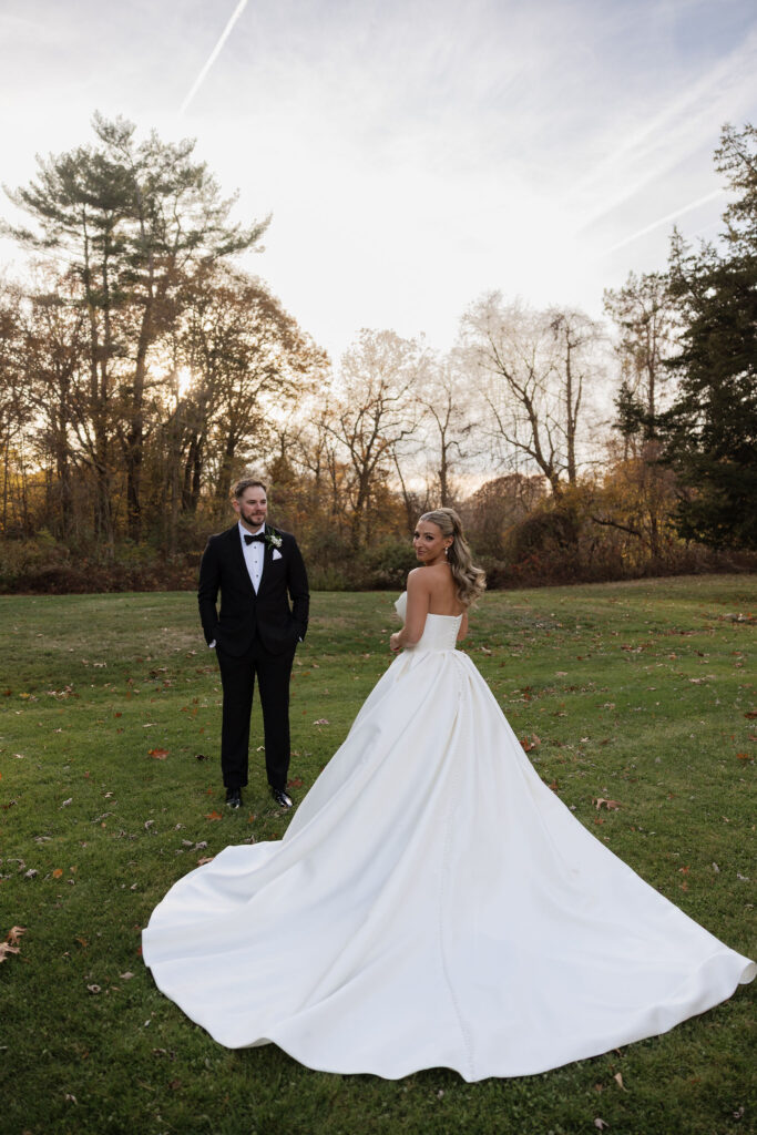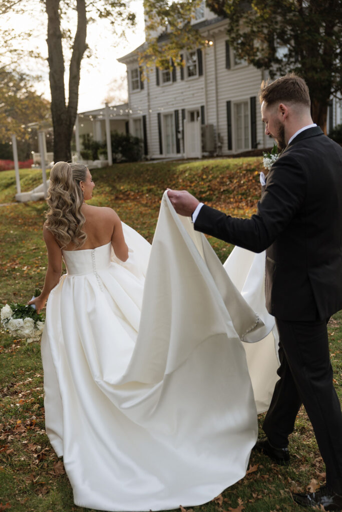 One of my favorite moments of the day was Christina and Matt’s first look. It was sweet, quiet and incredibly intimate. Matt was floored seeing Christina in her gown, and the emotion between them was so genuine. Afterward, we spent some time exploring the property at Floriana for portraits, and honestly…they speak for themselves. The fall tones, the architecture, the love; Everything just worked.