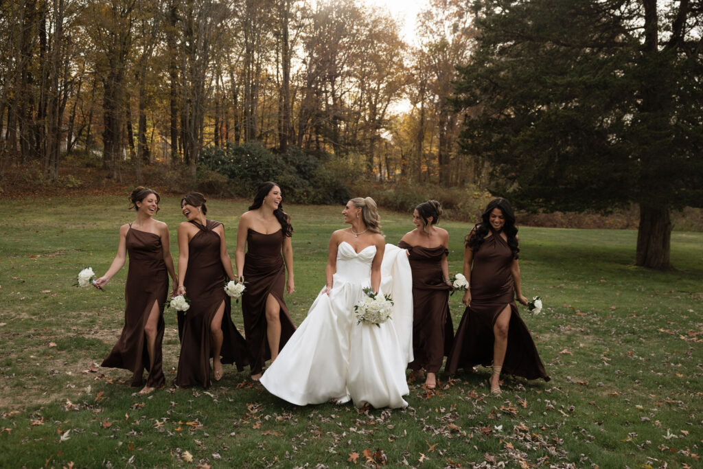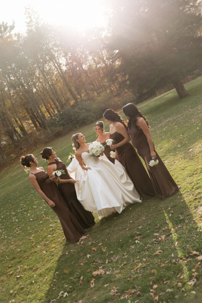 And can we talk about the bridesmaids for a second? The espresso-colored dresses stopped me in my tracks. They were rich, timeless and photographed beautifully,especially paired with the soft fall light and the surrounding autumn landscape. I will never get over how perfectly they tied the entire aesthetic together.